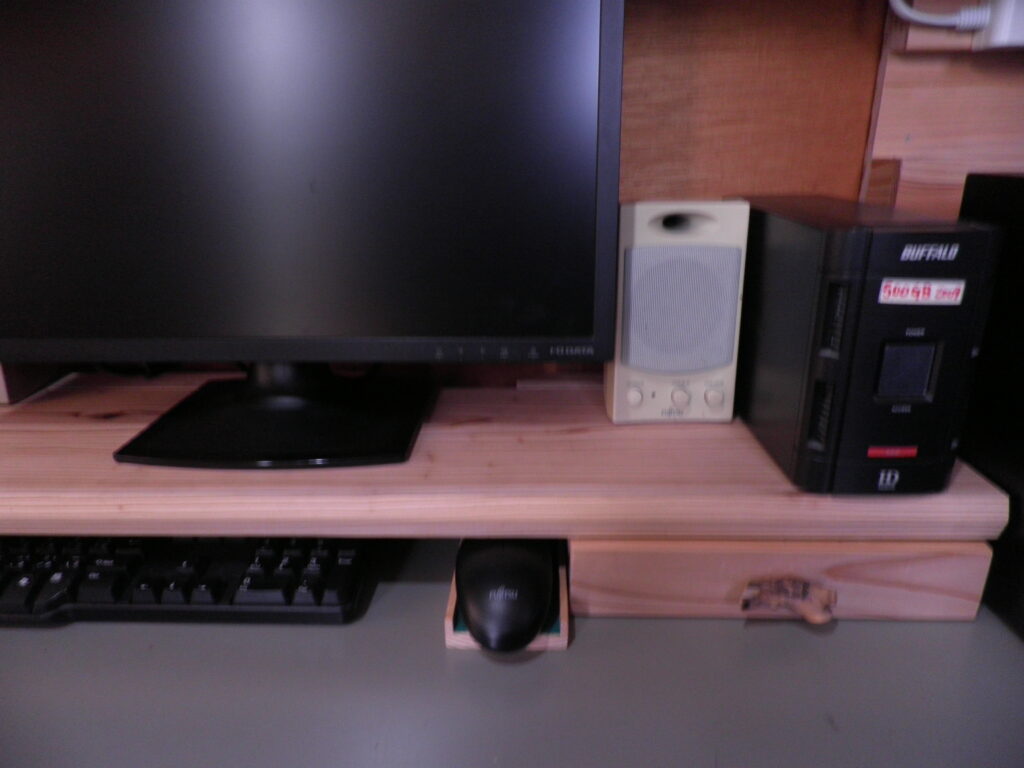 ディスプレイ台-キーボードやマウス収納、引出付き
